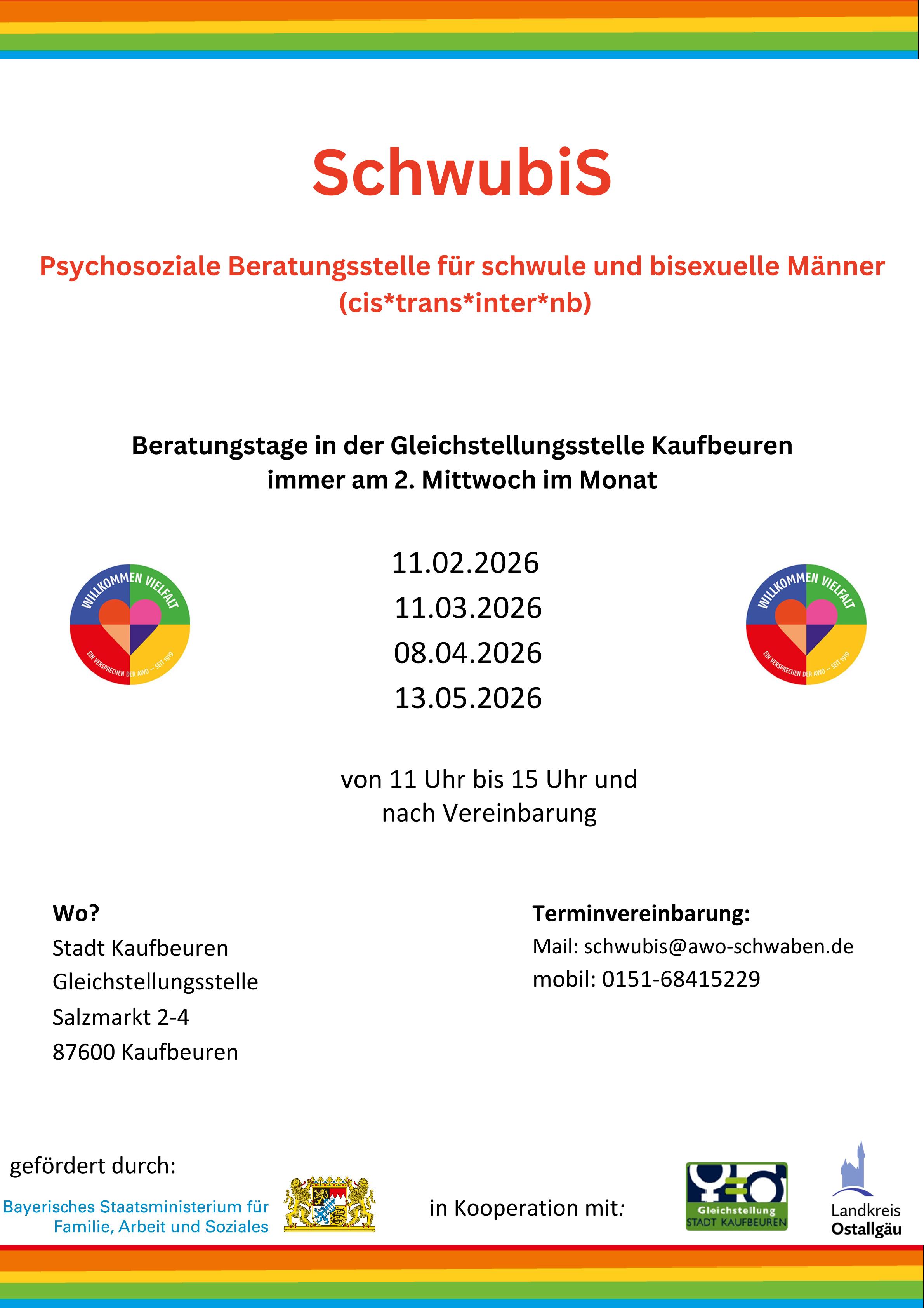 Stadt Kaufbeuren, Gleichstellungsstelle, Salzmarkt 2+4, II. Stock, 87600 Kaufbeuren Alle Infos sind auch unter Downloads zu finden. Weitere Informationen unter: https://zas-schwaben.de/schwubis.html